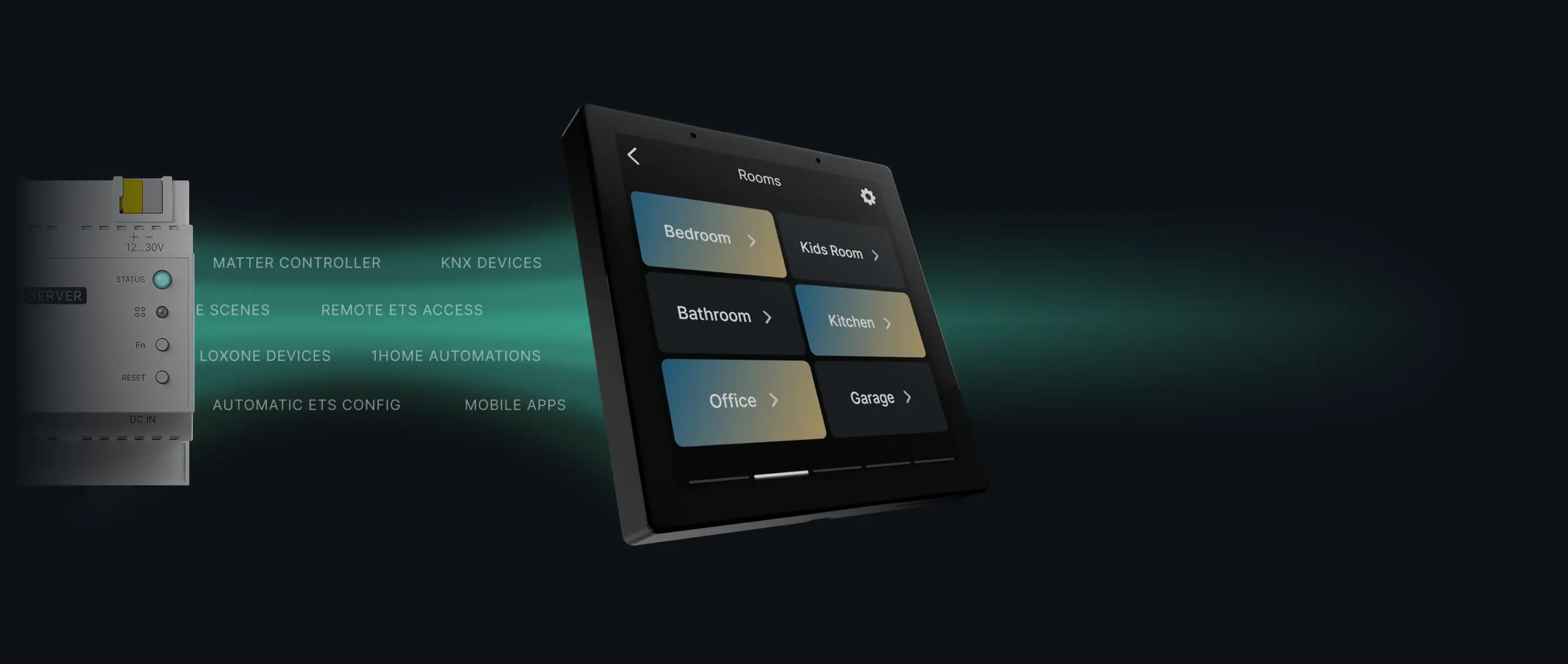 1Home Touch gir deg full kontroll over både KNX- og Matter-enheter i samme grensesnitt. Perfekt hvis du ønsker å kombinere tradisjonell KNX med moderne trådløse smart-enheter.